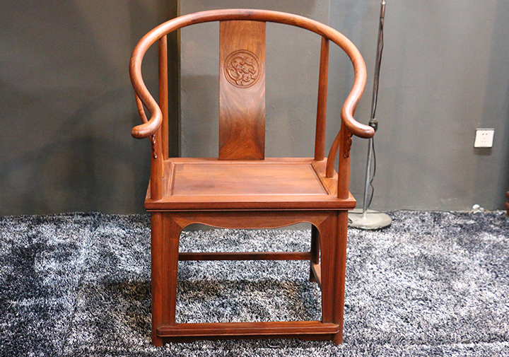再則是官帽椅,官帽椅可分為南官帽椅和四出頭式官帽椅兩種。所謂四出頭,實質就是靠背椅子的搭腦兩端、左右扶手的前端出頭,背板多為“S”型,而且多用一塊整版制成。南官帽椅的特點是在椅背立柱和搭腦相接處作出軟圓角,由立柱作榫頭,橫梁作榫窩的煙袋鍋式做法。椅背有使用一整版做成”S”形,也有采用邊框鑲板做法,雕有圖案,美觀大方。