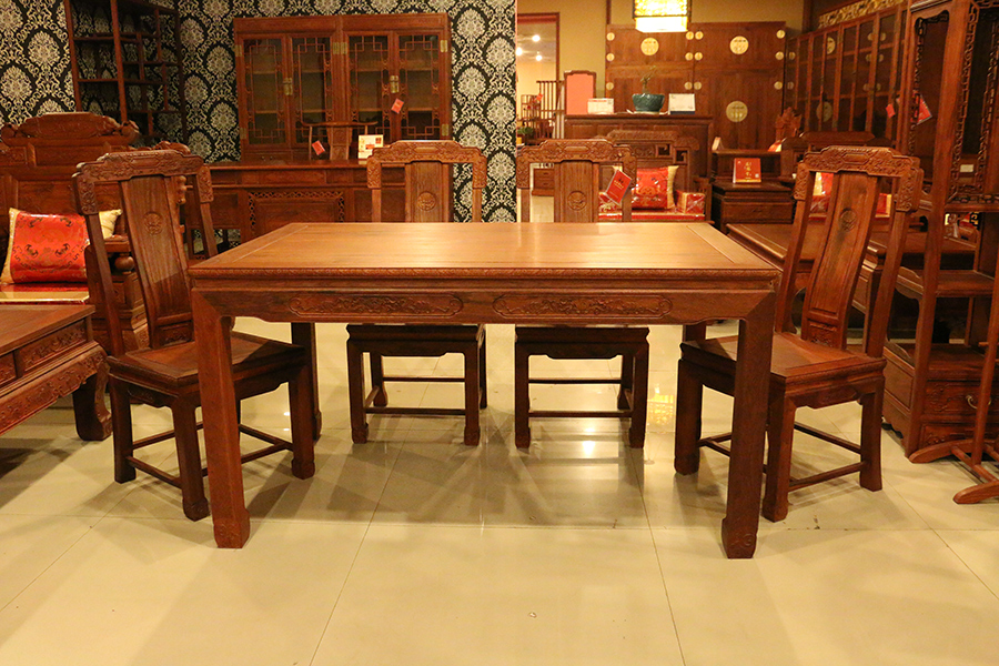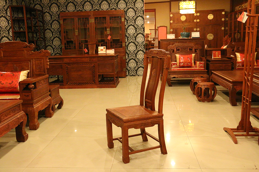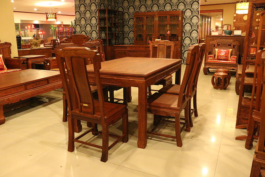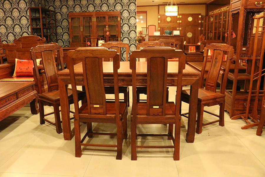 中西混搭中,清式紅木家具是被優先考慮的,煥彩生輝、雕琢精巧的清式紅木家具與歐式風格的宅院會愈加的適宜。深色系的清式紅木家具和喜用銀箔、金箔裝修的歐式宅院的金銀色彩更容易調配;精雕穩重的清式紅木家具在歐式的居室中更能“壓得住局面”。